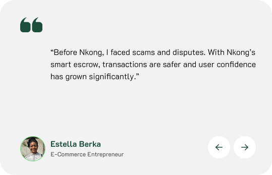 Nkong serves as a trusted intermediary, holding funds securely until both parties vei i that all transaction terms have been fulfilled.